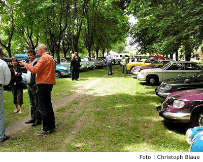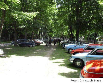 Panhardisten sind der guten Form verpflichtet — die teils sehr sorgfältig gepflegten Wagen, die saubere Reihe der auch aus halb Europa gekommenen Panhards exakt zur Gratulations-Parade geordnet, die alle genau zur auf der Einladung angegebenen