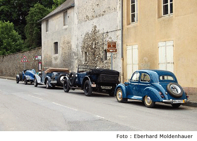 Eberhard hatte - mit Engagement und ebensolcher Freude daran - die deutsche Teilnahme initiiert und alle interessiert, so dass wir dann auch tatsächlich diese hervorragende Präsenz in Crécy zeigen konnten. Eckhart Sporleder und Gaby hatten für das panhardische Flair gesorgt ... denn niemand brauchte einen detailreich vorgegebenen Plan oder ein Programm, nein, Panhardisten können gut für sich selber und vor allem für ihren Spaß sorgen!