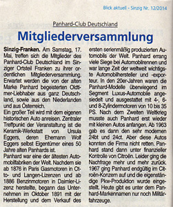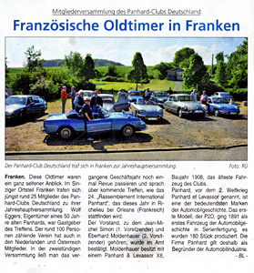 Am 17. Mai 2014 fand die Vollversammlung des Panhard-Clubs Deutschland in Sinzig-Franken statt. Organisiert hatte die Veranstaltung Wolf Eggers mit tatkräftiger Unterstützung von seiner Frau Uschi.