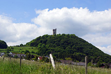 (kaum jemand außer uns war unterwegs) zur Burgruine Olbrück, die weithin übers Land schaut. Im ersten Gang war der Parkplatz zu Füßen der Burg erreichbar. Bloß nicht an der Steigung stehen bleiben!!!