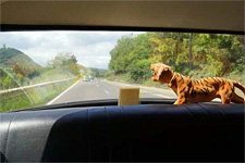 Beim Aufbruch grand malheur für Wim und Thomas: Wims PL 17 rollte am Gefälle an und traf auf Thomas' Heckklappe — oh je!